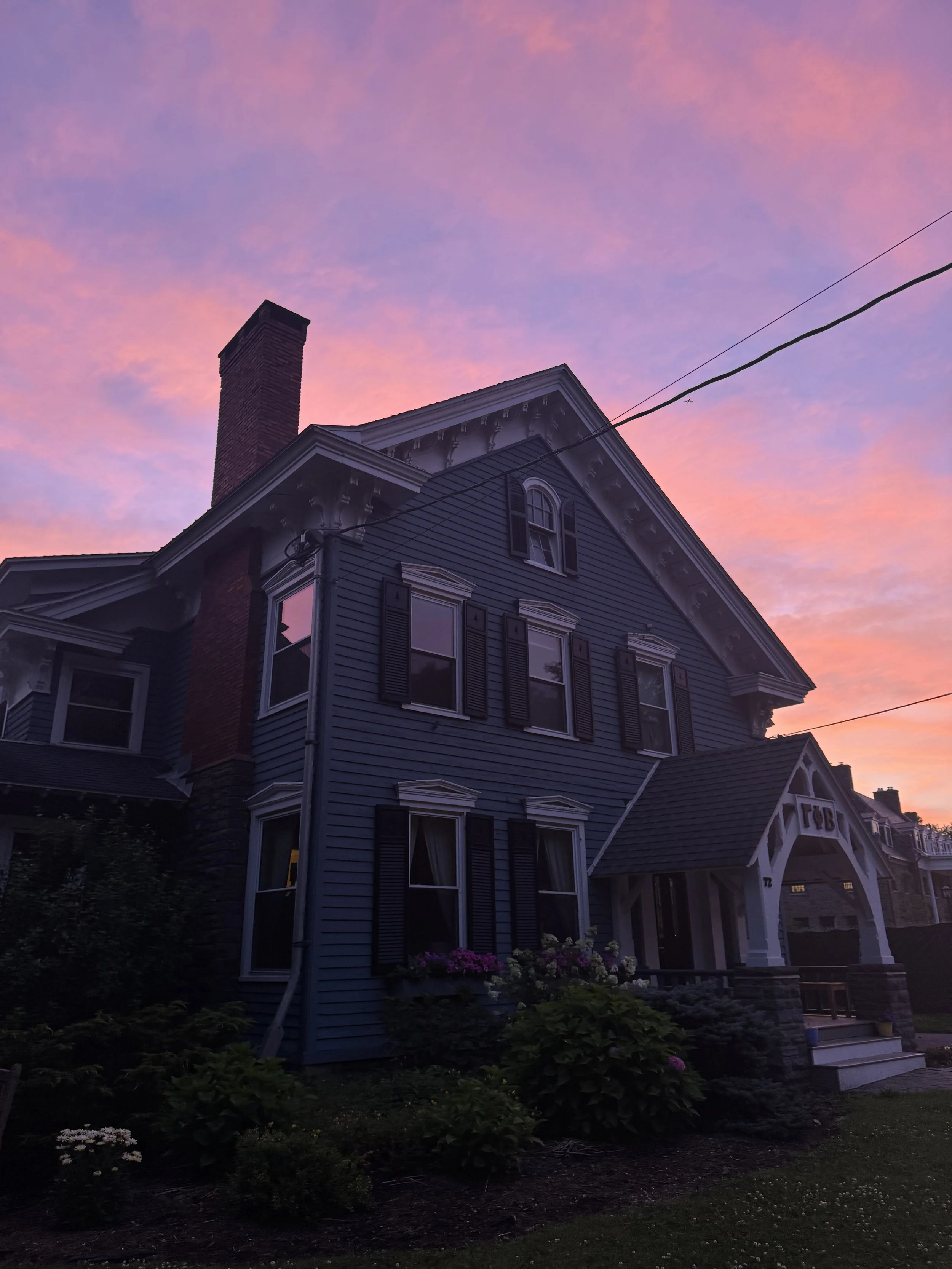 The Delta Tau Chapter of Gamma Phi Beta was installed at Colgate University on November 14, 1981. Little Blue, our chapter house, located at 72 Broad Street, sleeps twelve in four singles, one double, and two triple rooms. The President, Administrative Vice President, Financial Vice President, House Manager, and New Member Educator live in the house. The remaining spots are open to any of our sisters. Our full-sized kitchen, dining room, living rooms, and TV rooms are available for all sisters at any time of the day!
